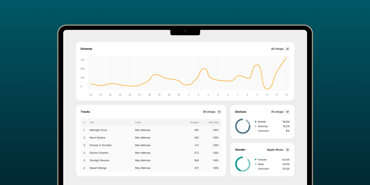 Get detailed insights from all major streaming and download platforms. Analyze your music performance and grow your fan base with ease.