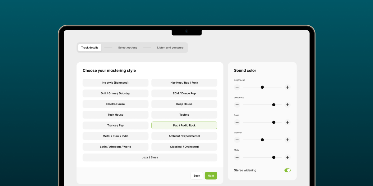 Achieve studio-grade audio effortlessly using our intuitive online mastering tool, designed for musicians at any skill level.