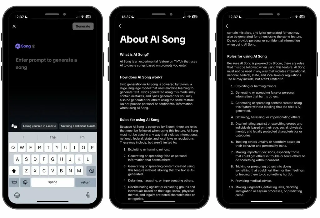 Para generar letras, TikTok utilizó modelo de lenguaje grande (LLM) llamado BLOOM, que significa BigScience Large Open-science Open-access Multilingual Language Model. BigScience, descrito como “un proyecto de espacio abierto compuesto por cientos de investigadores de todo el mundo”, lanzó BLOOM por primera vez en noviembre de 2022. Según se informa, el LLM tiene 176 millones de parámetros y es capaz de generar texto en 46 lenguajes naturales y 13 lenguajes de programación.